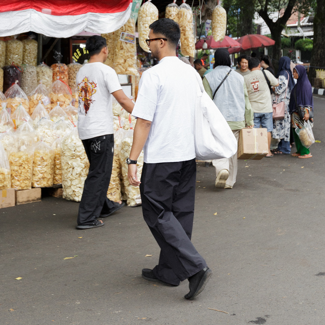 The Hans Baggy Pants are our newest addition to our pants range. While designing, our aims were to create a product that easy to reach for and adaptable to changing environments like in Indonesia. The Hans Baggy Pants are made from a lightweight 100% Nylon with a relaxed drape. Self fabric drawstring for seamless touch. This cut is unique, some of people knows it for pleated trousers cut with wider leg opening.